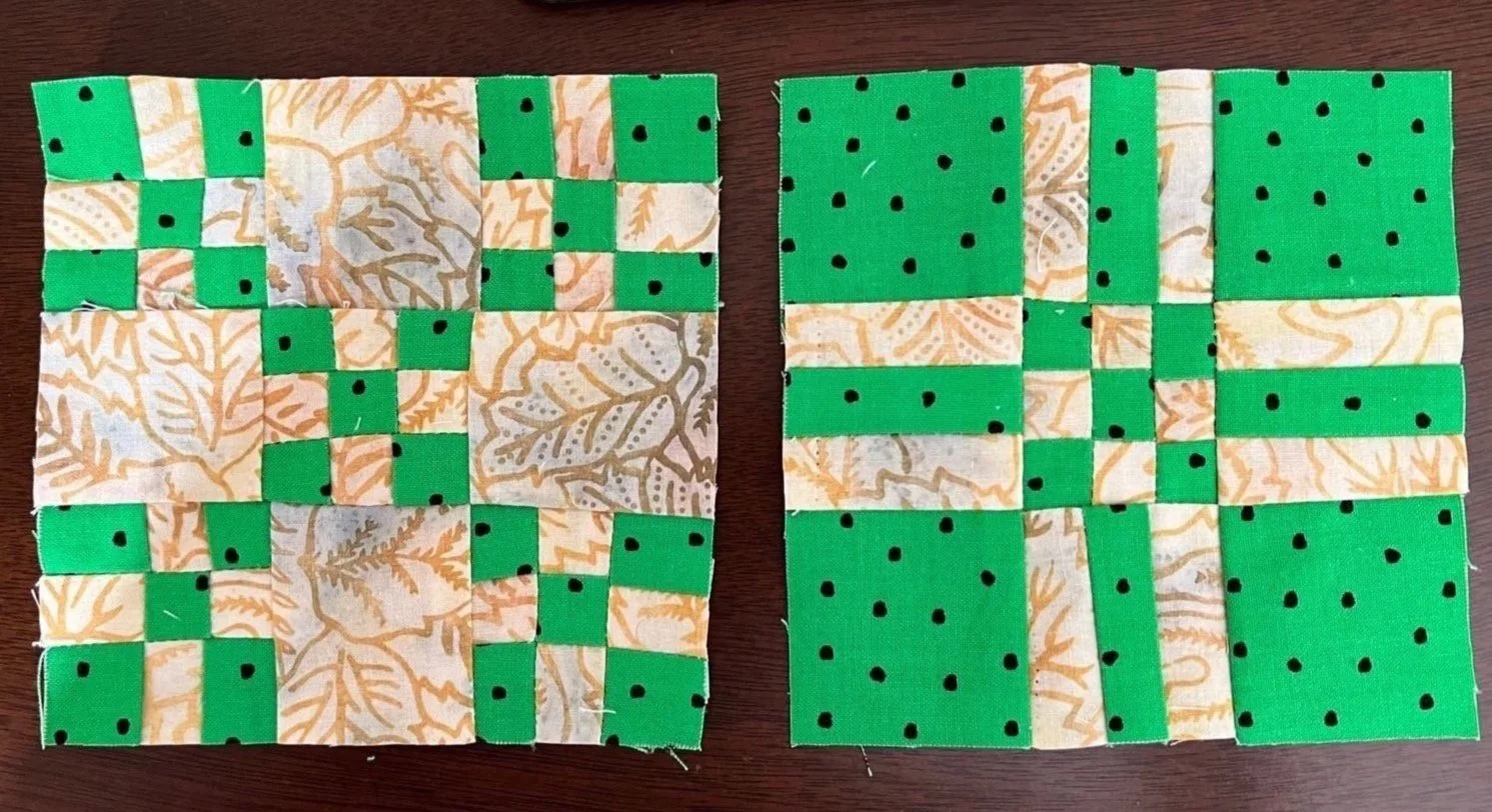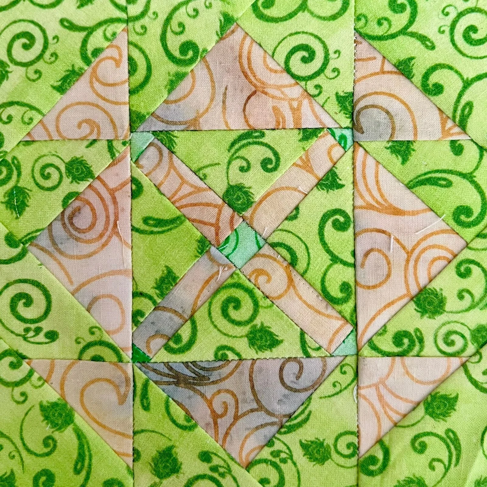 Here are a few of my own examples of some Dear Jane quilt blocks with things that went right/wrong in my blocks. These are 4.5” blocks and some pieces are sort of similar sized as the New York Beauty blocks. Hopefully, they serve as pointers in selecting your own fabric for your New York Beauty blocks( or any blocks, really! ).